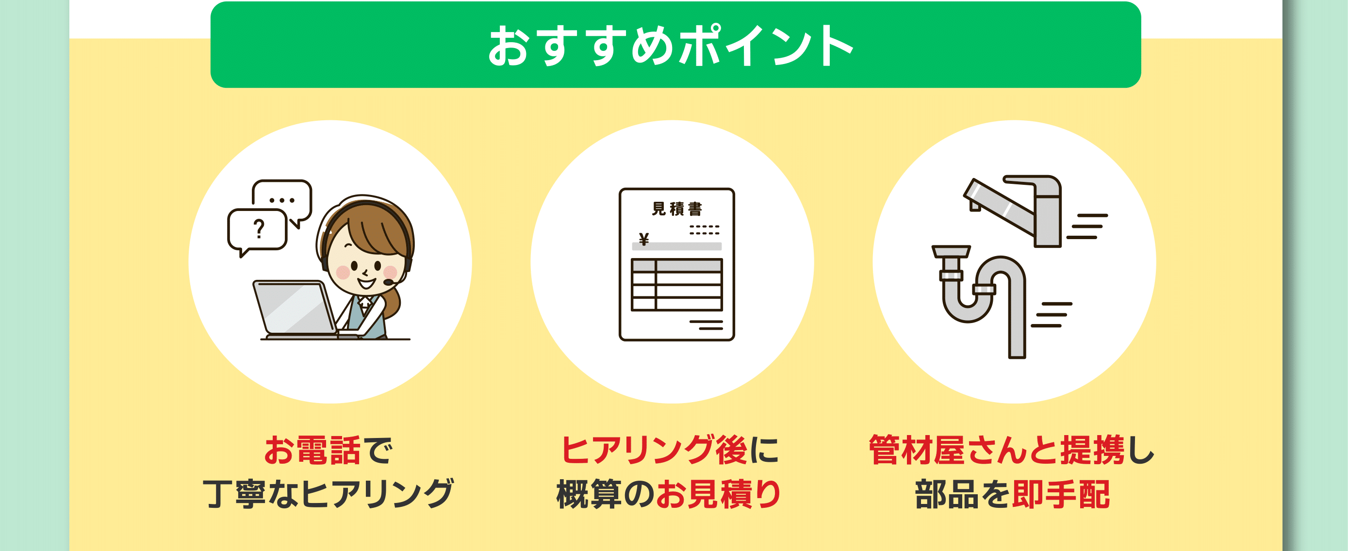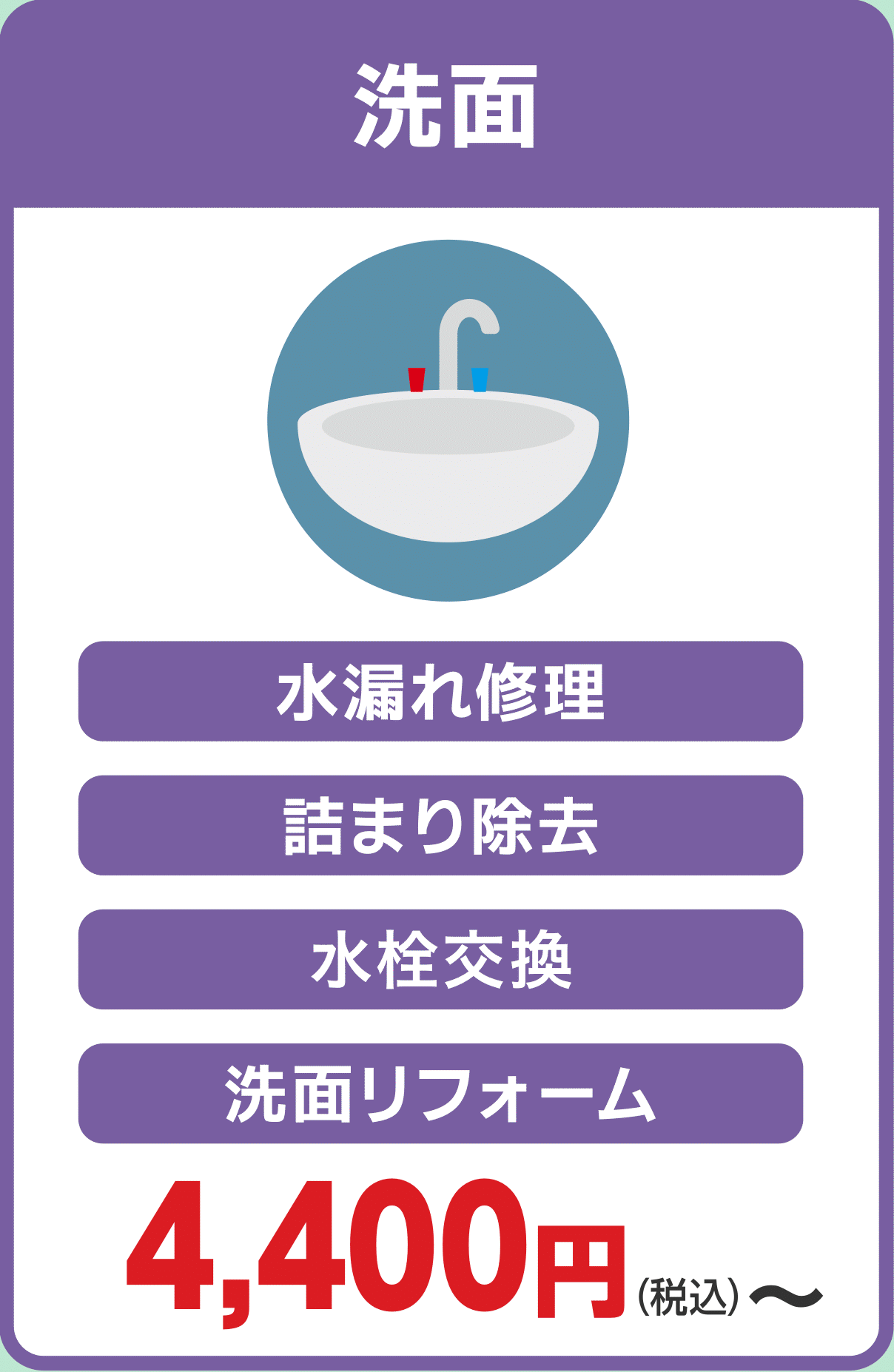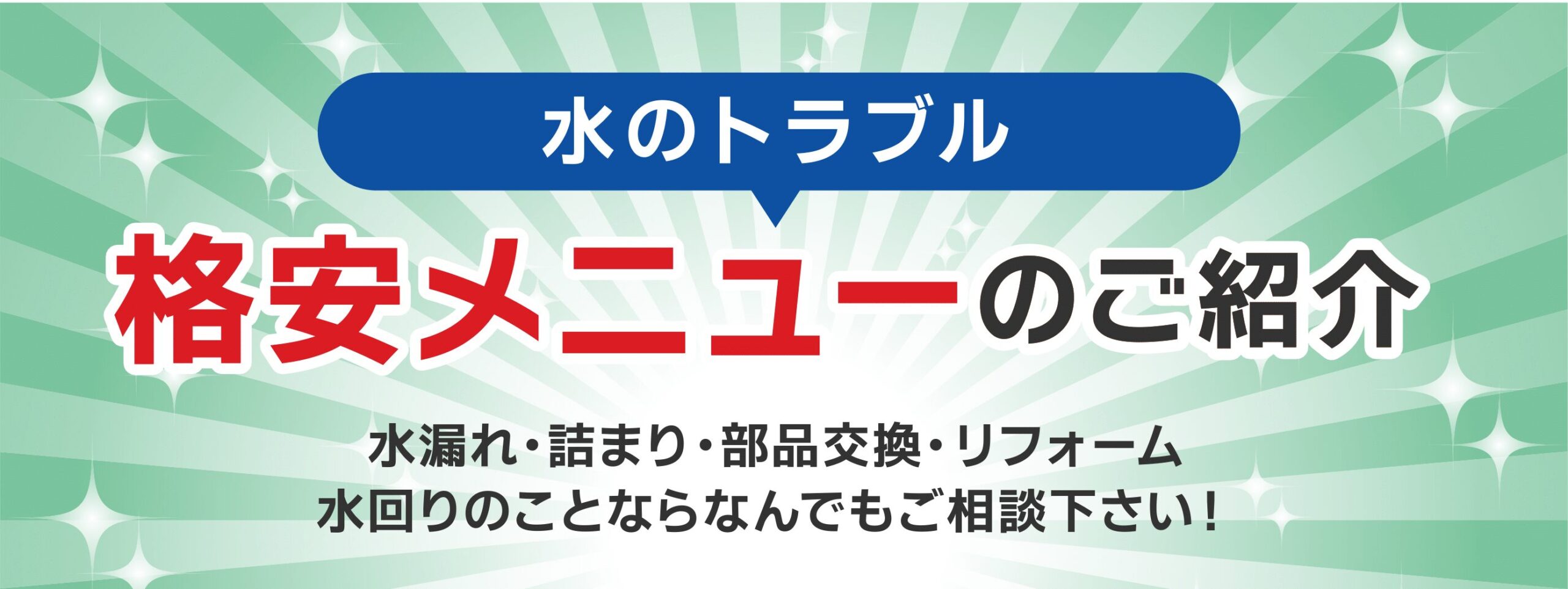 | 事業内容 | 水道設備工事 水のトラブル駆付けサービス リフォーム全般 |