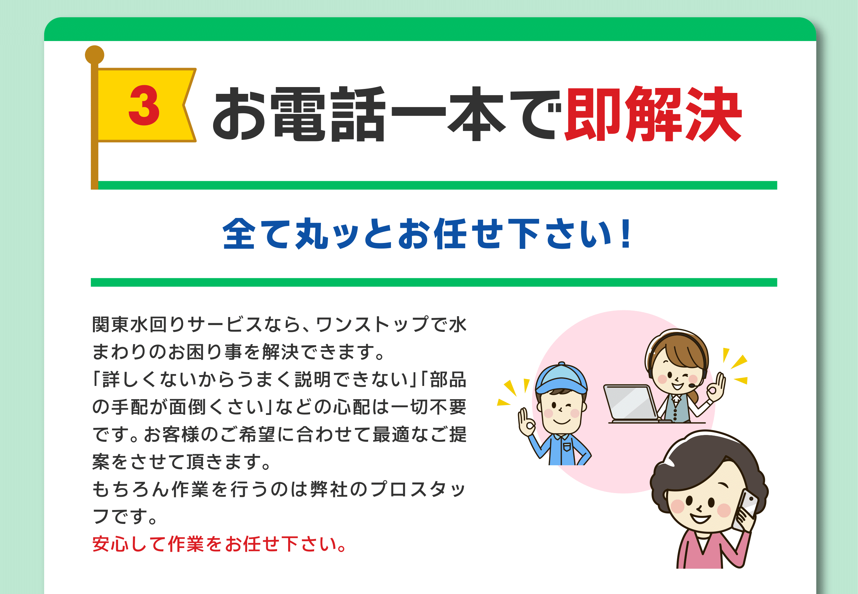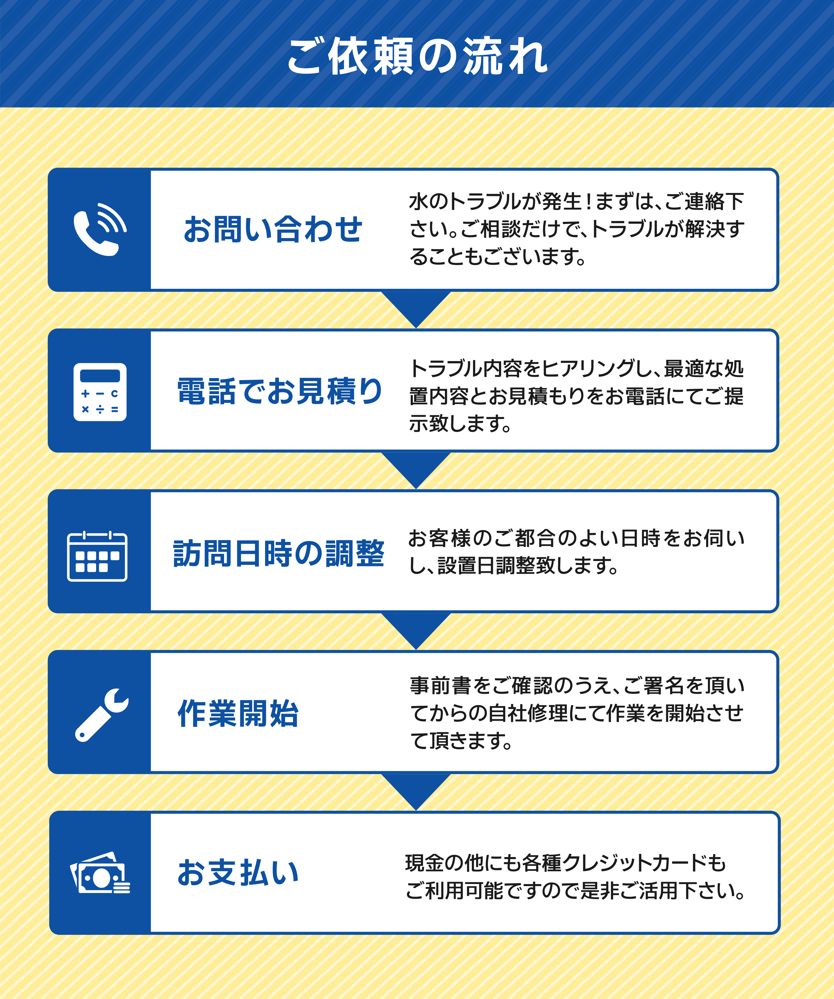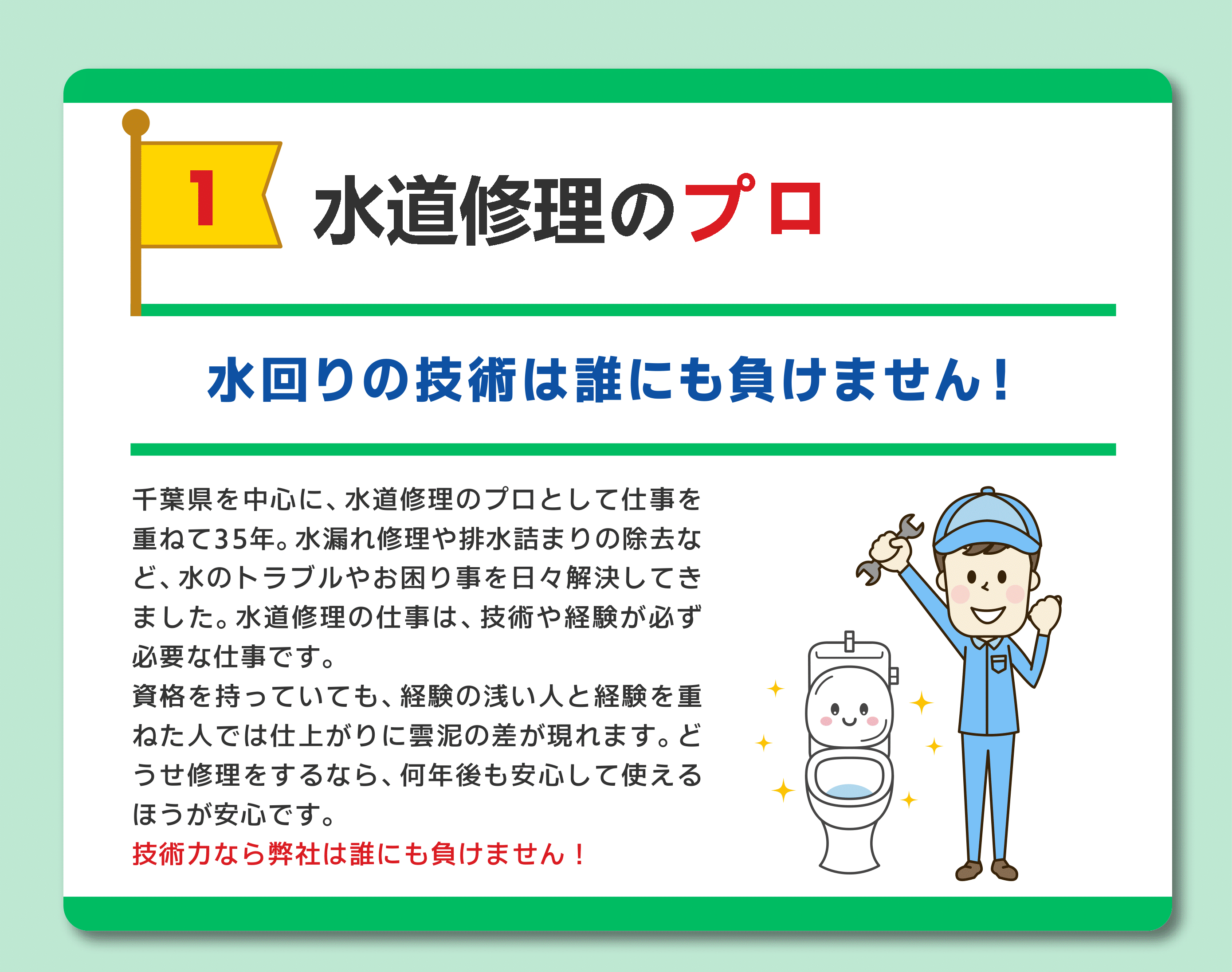 | 事業内容 | 水道設備工事 水のトラブル駆付けサービス リフォーム全般 |